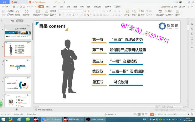 课程结构:第一节:“三点”原理及优势三点法则的介绍:讲解三点法则的核心思想,分析价格走势、成交量和市场情绪这三大要素如何影响期货市场的波动。三点法则的优势:为什么通过三点法则可以简化交易判断,提高交易效率。学员将学会如何根据这三点辨别市场趋势的方向。第二节:如何用三点来辨认趋势趋势的形成与识别:通过三点法则,教会学员如何识别市场的主要趋势(上涨、下跌、震荡),并提前做好准备。如何在期货市场中通过三点法则抓住趋势:结合期货的交易特点,讲解如何在行情开始形成时,通过三点法则快速辨识并抓住趋势,避免在震荡期盲目跟随。第三节:“一招”交易技巧一招致胜的核心思想:将复杂的市场信息简化为一个交易技巧,即通过一个明确的操作信号来指导交易入场和出场。如何精准进入和退出期货市场:结合市场波动,教会学员如何根据“一招”交易法则,在波动市场中抓住价格的最佳买入点和卖出点。第四节:“三点一招”买卖规则期货交易的买卖规则:详细讲解如何根据“三点一招”的法则设定买入点和卖出点,并结合期货市场的特性,做出快速决策。如何避免过度交易和错过机会:强调如何通过合理的买卖规则控制交易频率,避免盲目追涨杀跌,同时确保在行情启动时能准确把握。第五节:补充说明进一步的实战技巧:提供一些市场实战技巧,帮助学员更好地运用三点法则与一招技巧,提升交易的成功率。心理素质与心态管理:讲解期货交易中的心理管理技巧,帮助学员在快速波动的市场中保持冷静,做出理智的决策。视频截图: