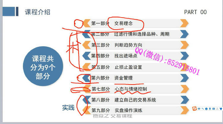 课程目录:001.“猎手”交易系统商品期货交易表现复盘(中长线)002.“猎手”交易系统课程介绍003.第一部分交易理念—第1节做交易的最基础认知004.第2节盈利规律005.第3节交易系统是什么006.第4节盈利的交易系统什么样007.第5节确保交易系统有效的方法008.第二部分过滤行情和选择交易周期、品种开篇009.第1节为什么要过滤行情010.第2节过滤行情的具体方法011.第3节选择交易周期012.第4节选择交易品种013.第三部分如何判断方向——是涨还是跌?014.第1节站稳的概念015.第2节“猎手”交易系统判断方向的理念016.第3节上升_下跌趋势是否延续的判断方法017.第4节上升_下跌趋势是否逆转的判断方法018.第5节判断方向的准确率019.第四部分进场点的选择—发现趋势起爆点020.第1节判断方向和选择进场点的关系021.第2节“猎手”交易系统的选择进场点的理念022.第3节下跌转上升的进场点023.第4节上升转下跌的进场点024.第5节课趋势进行中要不要进场025.第五部分止盈与止损——出场点的选择026.第1节被动(动态)止损止盈与主动(固定)止盈止损的区别027.第2节被动止盈点的设置方法028.第3节被动止损的逻辑029.第4节被动止损的三种情况030.第5节遇到假转折时被动止损点的设置031.第6节遇到假突破时被动止损点的设置032.第7节止损设置过大怎么办?033.第8节被动止损后要不要反手开单034.第六部分如何进行资金管理开篇035.第1节资金管理要达成的效果036.第2节资金管理是个人选择037.第3节场外资金管理的原则和办法038.第4节仓位管理怎么做039.第5节主动止盈的效果040.第6节主动止盈的方法041.第7节主动止损的效果042.第8节课主动止损的方法043.第9节主动止损止盈后是否要反手开单044.第六部分总结篇045.第七部分心态情绪管理开篇046.第1节心态不好的的原因047.第2节好心态的具体做法048.第3节我们应该怎样对待财富049.第4节交易到最后拼的是人生观050.第八部分建立自己的交易系统开篇051.第1节确定自己要做什么样的交易052.第2节交易流程——交易准备要做的事053.第3节交易流程——交易进行中要做的事054.第4节交易流程——如何做复盘055.第5节模拟交易怎么做056.第八部分总结篇057.第九部分实盘演练开篇058.第1节2023年铁矿石中长线行情实盘走盘059.第九部分总结060.杨焱之“猎手”交易特训班先导课061.“猎手”交易系统商品期货交易表现复盘(趋势)(中长线)062.“猎手”交易系统商品期货交易表现复盘(波段)(短线)视频截图: